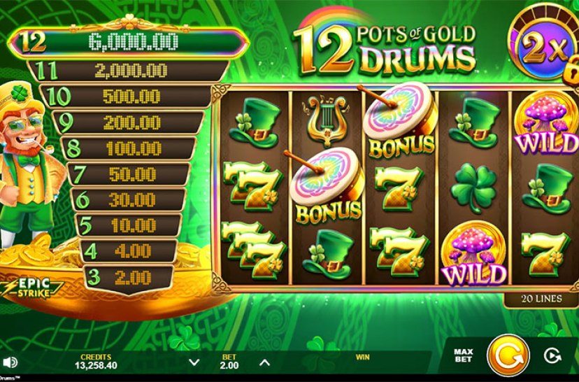 Join the adventure in 12 Pots of Gold Drums™ V92 Lotsaloot Jackpot, where Irish charm meets thrilling jackpot potential. Follow the rainbow, trigger Epic Strike™ prizes and unlock chances to land the Lotsaloot jackpot. With vibrant features and rewarding gameplay, every spin offers new opportunities to win big and chase jackpot rewards.