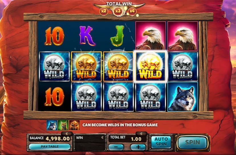 Ga op avontuur over de vlaktes met Grand Bison, een videoslot met 5 rollen en 3 rijen en 25 winlijnen. De WILD-vermenigvuldiger verhoogt je winst, terwijl de SCATTER-symbolen gratis spins activeren, waarbij de dieren in WILD's veranderen om je winstkansen verder te vergroten. Voel de kracht van de bizon en ontdek grote winsten!