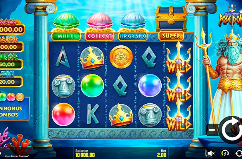 Hyper Frames Poseidon™ features a 3x5 slot with 243 ways to win and the Hyper Frames™ mechanic. Frames upgrade through pearl symbols, unlocking higher reward tiers. Bonus prizes range up to 5000x, creating strong win potential in an evolving gameplay system.