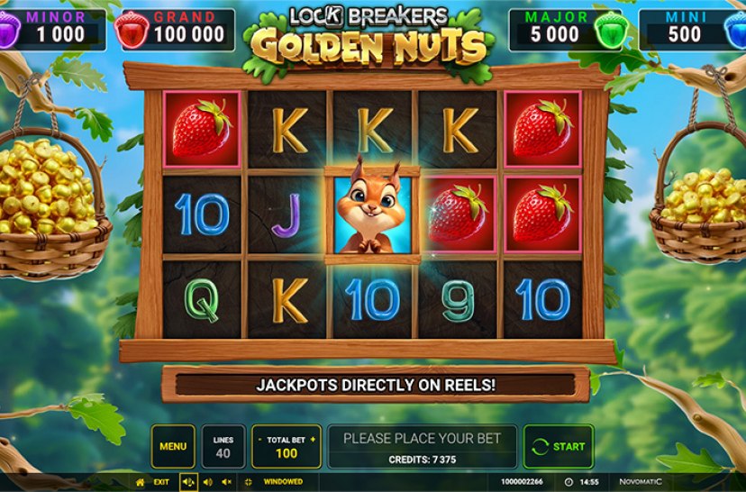 Werk samen met schattenjagende eekhoorns in Lock Breakers – Golden Nuts van Greentube! Met 40 winlijnen, 15 rollen en vier jackpots valt er veel te beleven. Ontgrendel symbolen met eekhoorns, vul gouden manden voor 6 Free Games en geniet van Magic Spin en Magic Rewind bij elke draai.