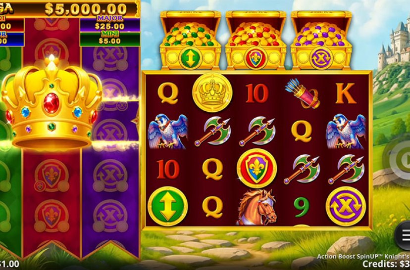 Action Boost SpinUP Knight's Ascension van Games Global brengt een middeleeuws avontuur waarin een ridder steeds sterker wordt. Als onderdeel van de Action Boost SpinUP-serie combineert het slot strategische mechanics met visuals geïnspireerd door ridderlijke quests.