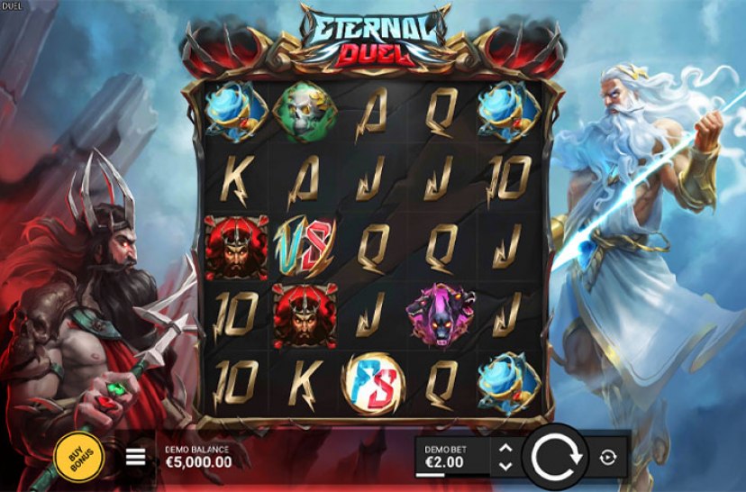 Eternal Duel by Hacksaw Gaming tells the epic story of two powerful brothers destined to clash. Born of divine origins, their battle shakes the realms as lightning and darkness collide. Mythic themes and dramatic visuals shape a tense slot experience where the struggle for ultimate power unfolds with every spin.