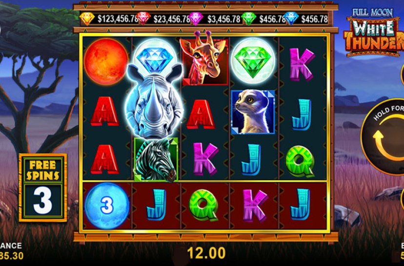 Full Moon: White Thunder van Playtech is een 5-reels avontuur met een krachtige witte neushoorn. Land zes Moon-symbolen om de Moon Collect Bonus met vergrendelde prijzen en free spins te activeren. Multiplier- en Bonus Moons verhogen je winst, terwijl de Moon Push-feature extra spanning toevoegt.