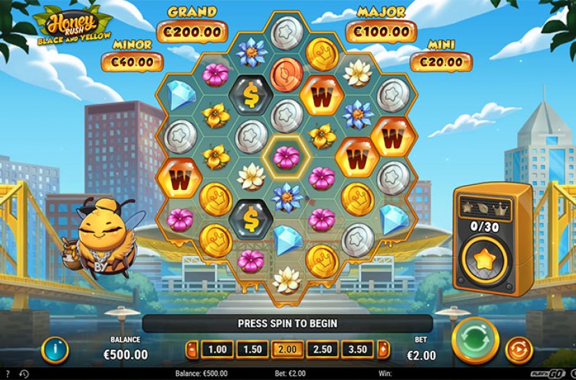 Stap in Honey Rush Black and Yellow, waar urban beats samenkomen met de energie van de bijenkorf. Elke spin biedt kleur, ritme en dynamische gameplay voor een unieke spelervaring.