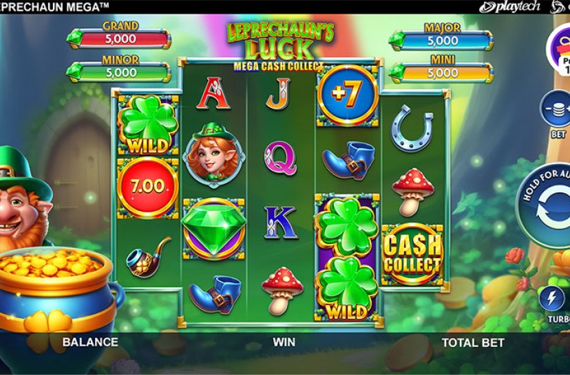 Leprechaun's Luck: Mega Cash Collect van Playtech laat de leprechaun zijn geluk over de reels verspreiden. Hij kan op elke spin prijzen toevoegen en zijn potten goud laten groeien. In free games verschijnt het Mega Cash Collect-grid met krachtige coin-features.