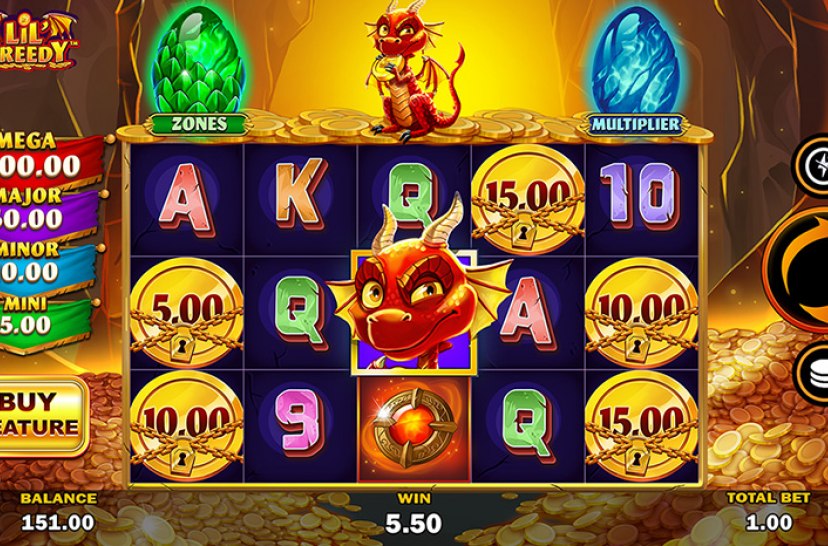 Stap de vurige drakenwereld binnen in Lil Greedy, waar de Dragon Zone explosieve beloningen activeert. Drakensymbolen gooien munten in potten en starten krachtige Free Games.