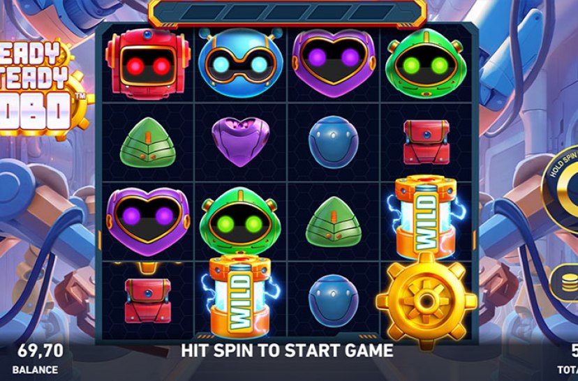 Join the robo-revolution in Ready, Steady, Robo, a fast-paced 4-reel slot with 256 ways to win. Land 5 or more Prize symbols to collect all prizes on screen, and assemble Full Robots to add Wilds, extra Prize symbols, or cash rewards up to 10x your bet. Free Games expand the grid to 625 ways for even bigger win potential.