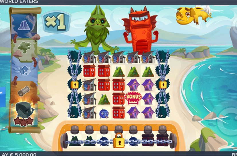 Kolossale monsters verslinden werelden alsof het snacks zijn. Als ze klaar zijn met een wereld, likken ze hun klauwen af ​​en ruziën ze over wie de volgende hap krijgt! World Eaters is een gokkast met 5 kolommen en 5 rijen, waarin werelden evolueren, het speelveld zich uitbreidt, muntwinsten mogelijk is, en allemaal verpakt in een potentiële winst van 10.000x de inzet.